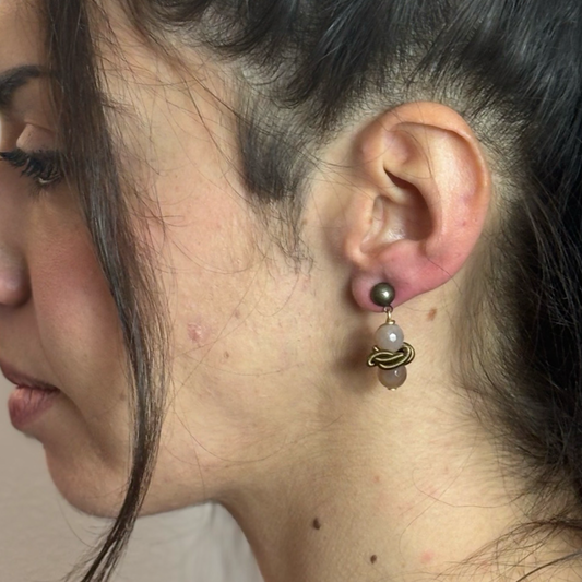 Orecchini Asimmetrici Groviglio con Pietra di Luna