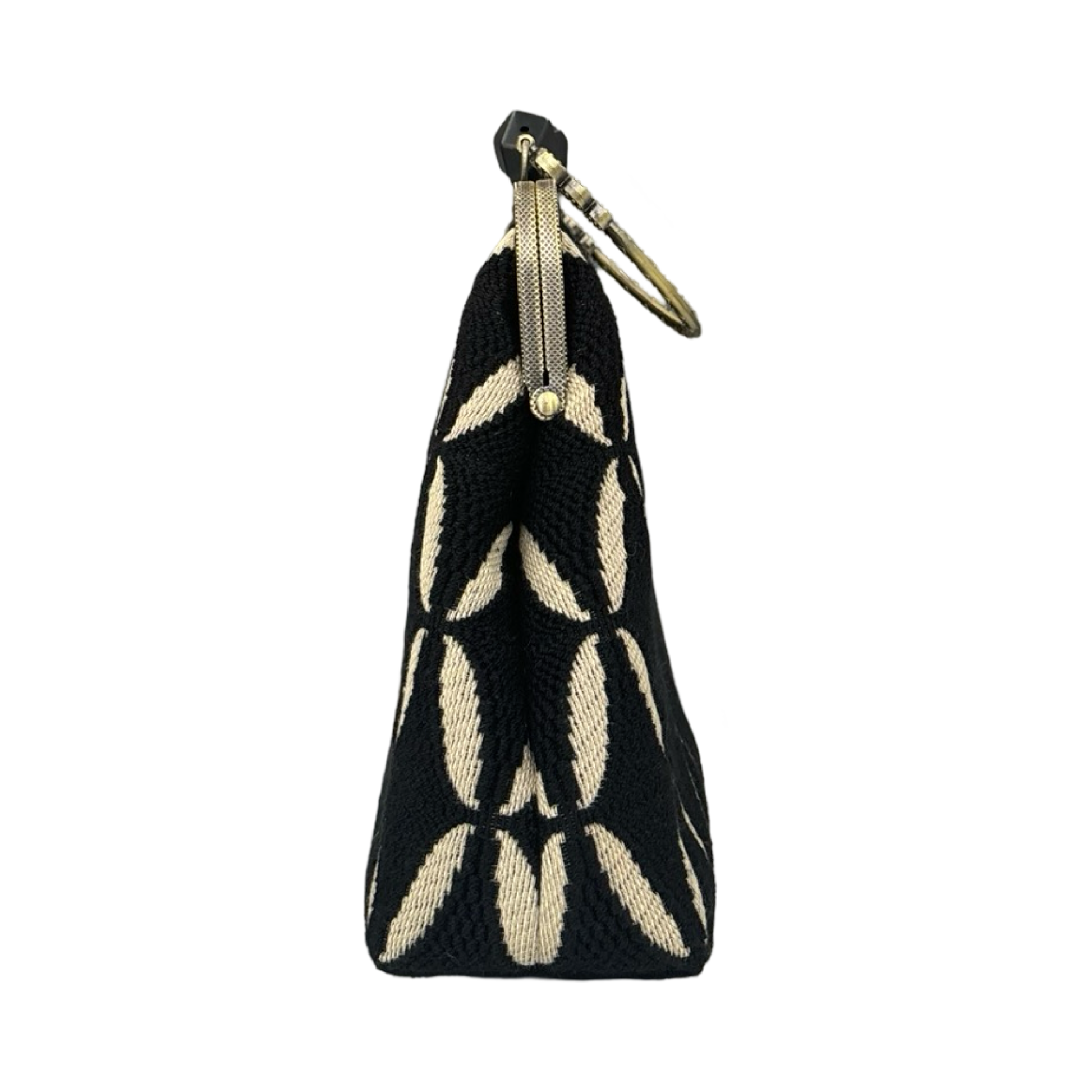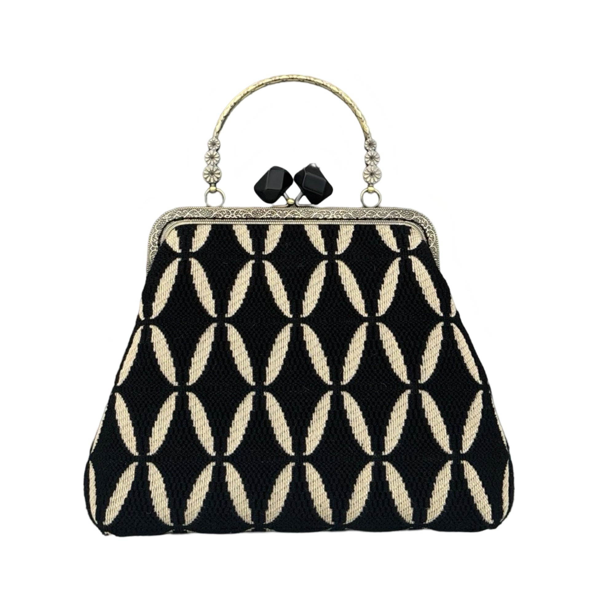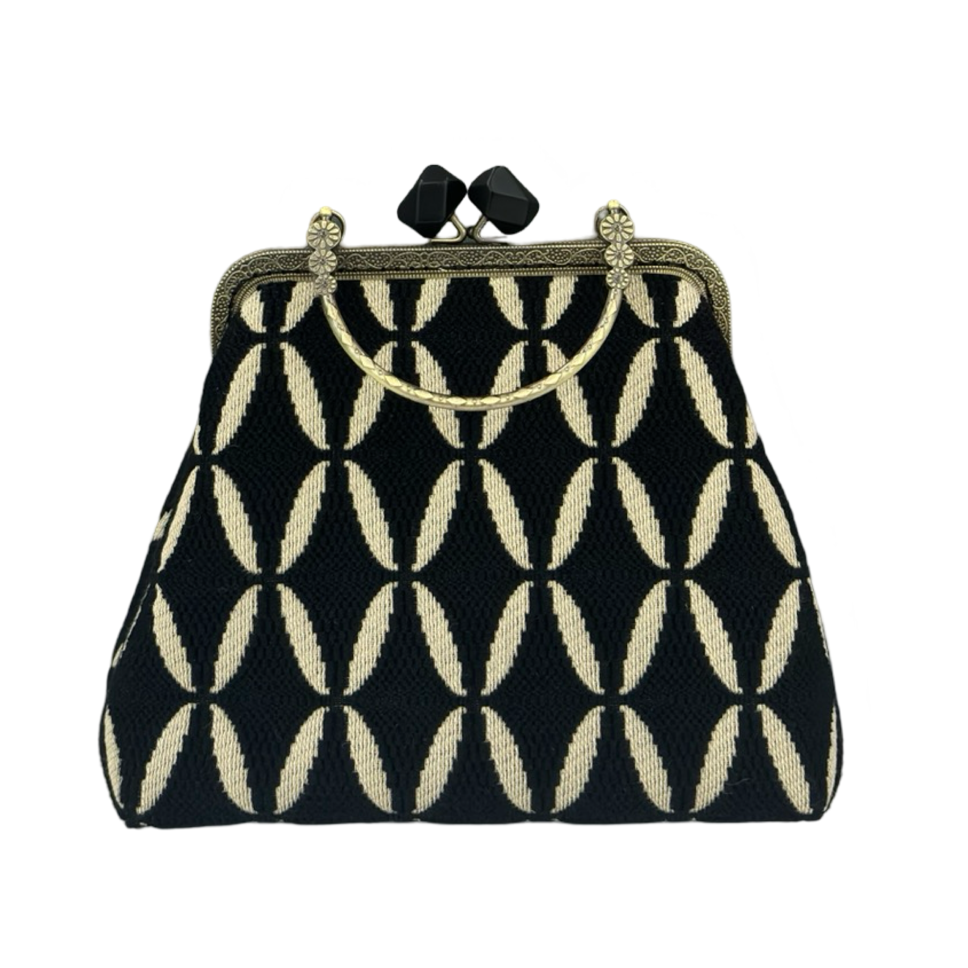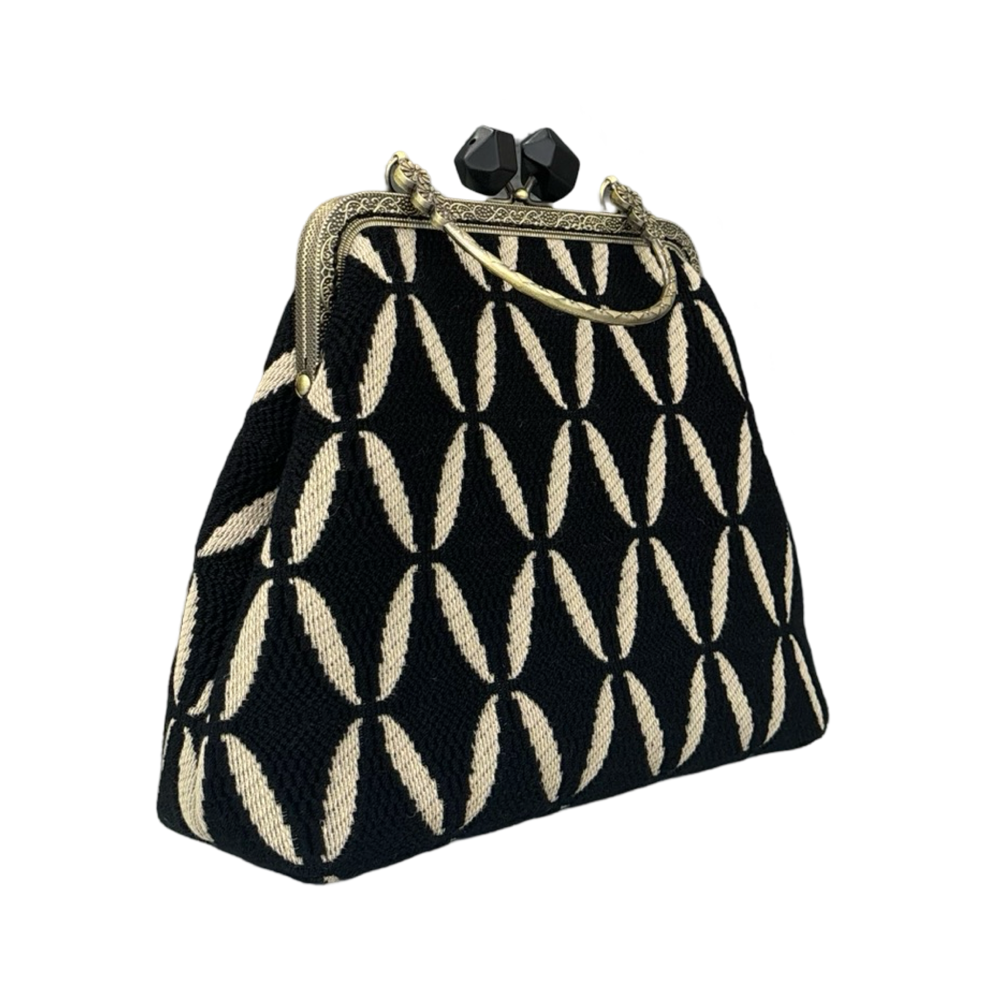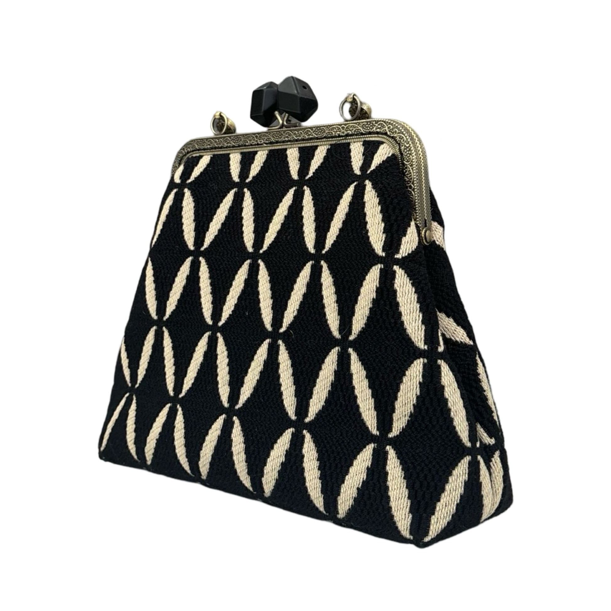 - Chiusura: A borsellino con telaio in ottone e pomelli in resina