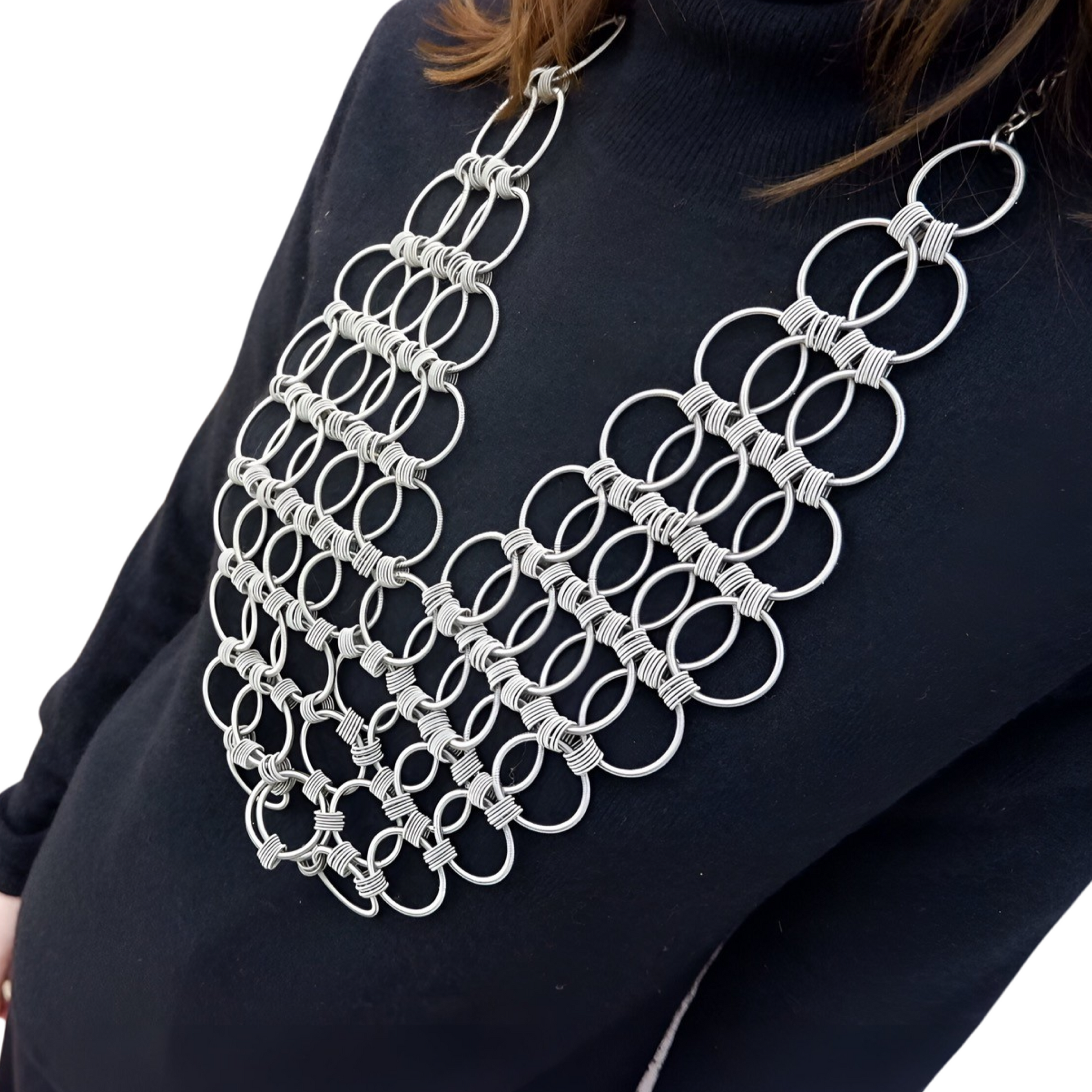 Collana in acciaio color argento formata da cerchi congiunti.