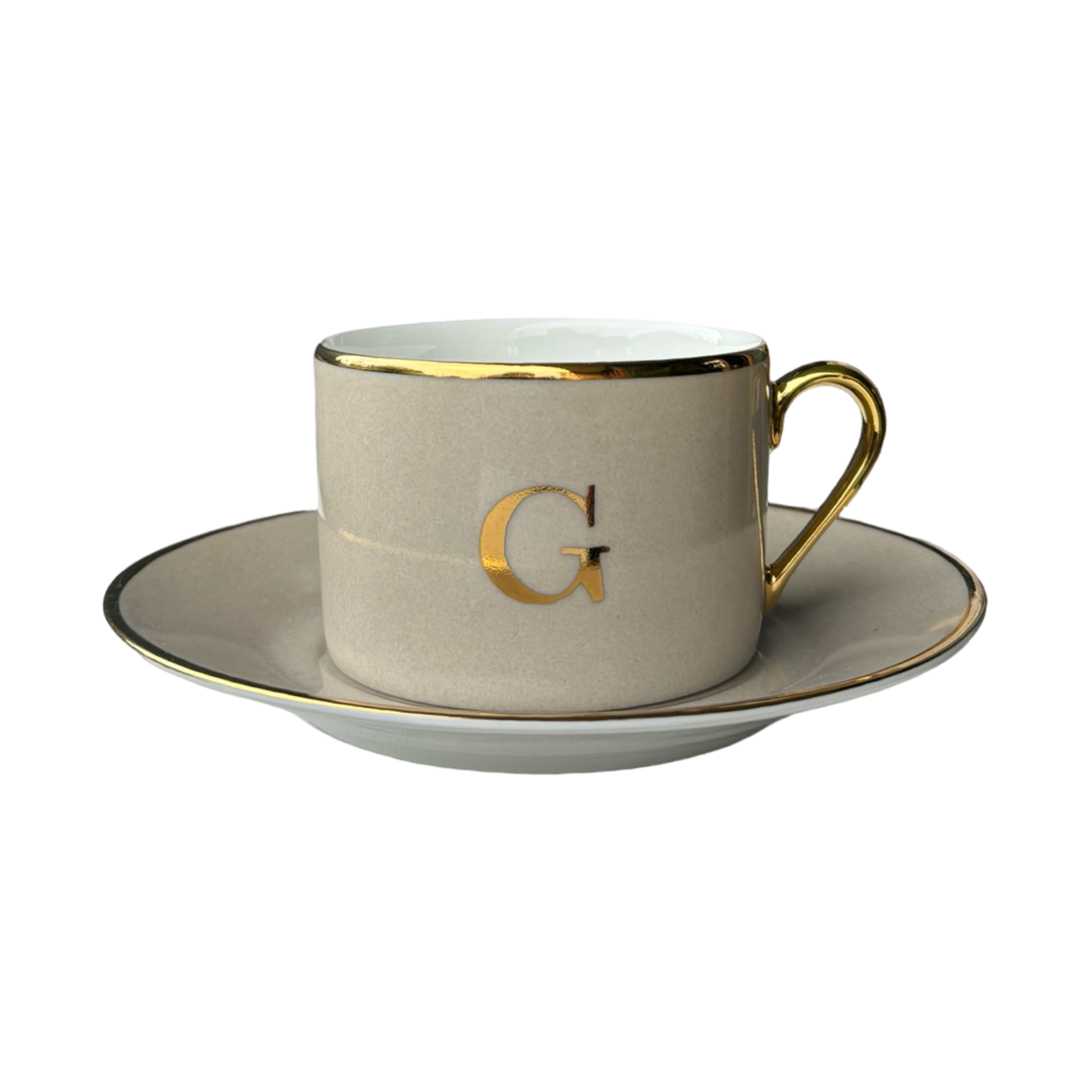 Eleganti tazze in porcellana di Limoges, decorate a mano e impreziosite da un filo d'oro o platino.