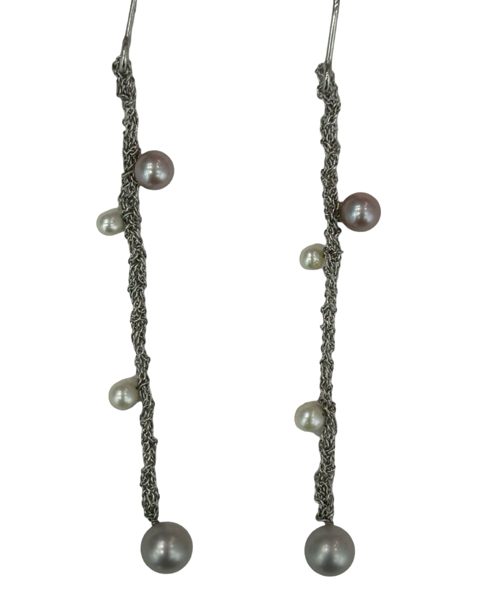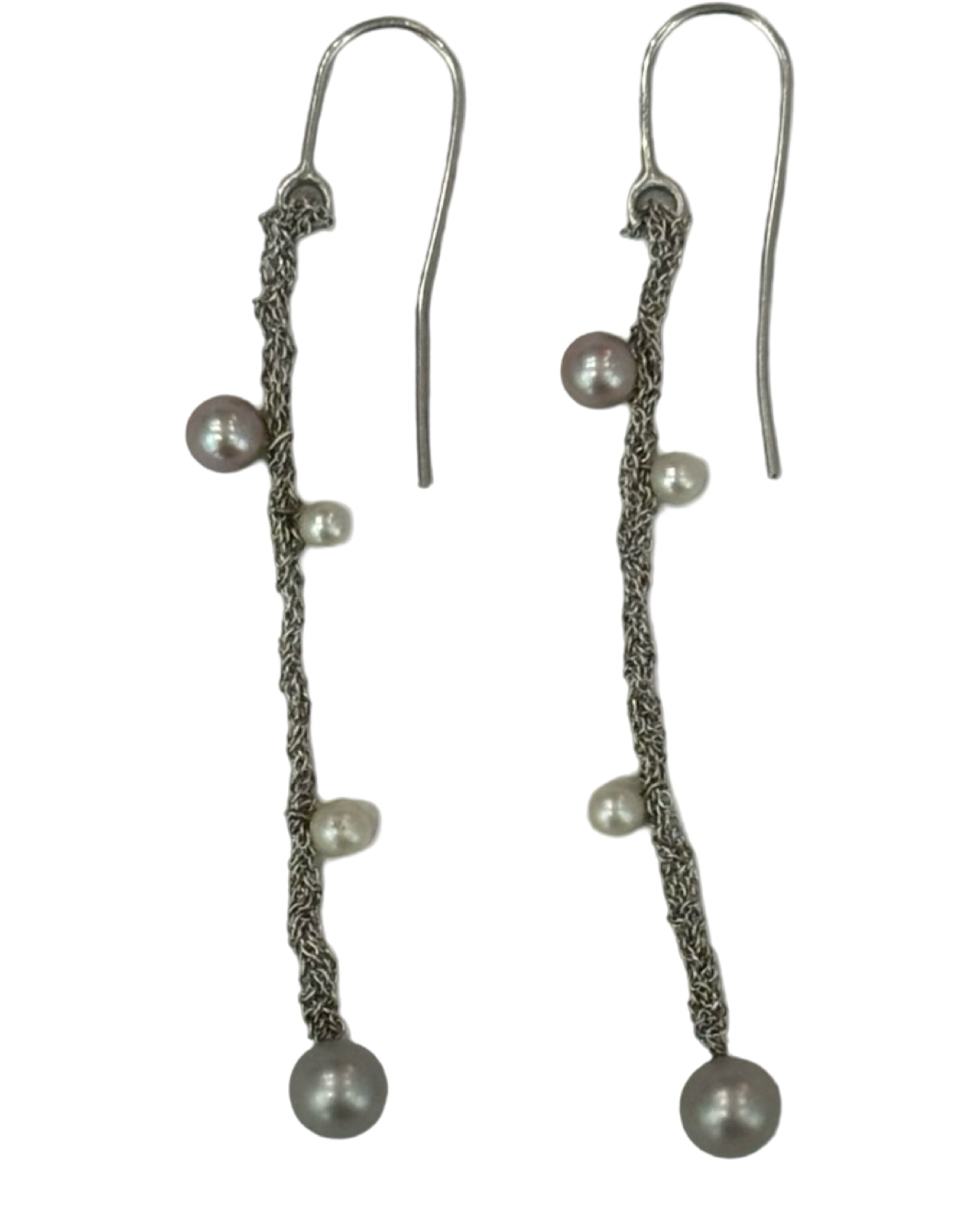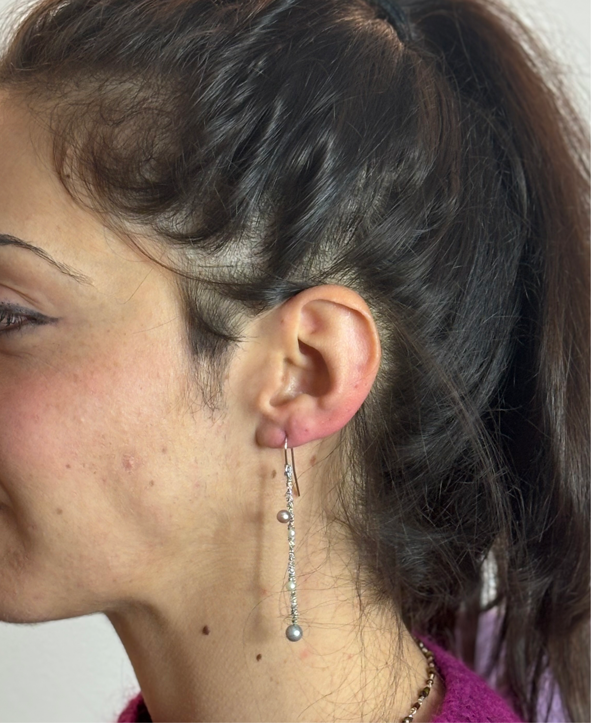Pendenti in argento con perle round bianche e grigie.