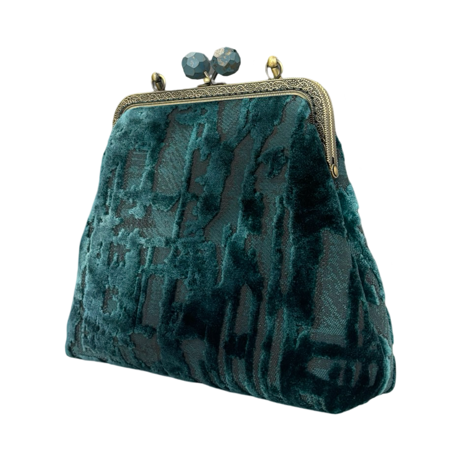 - Chiusura: A borsellino con telaio in ottone e pomelli sfaccettati