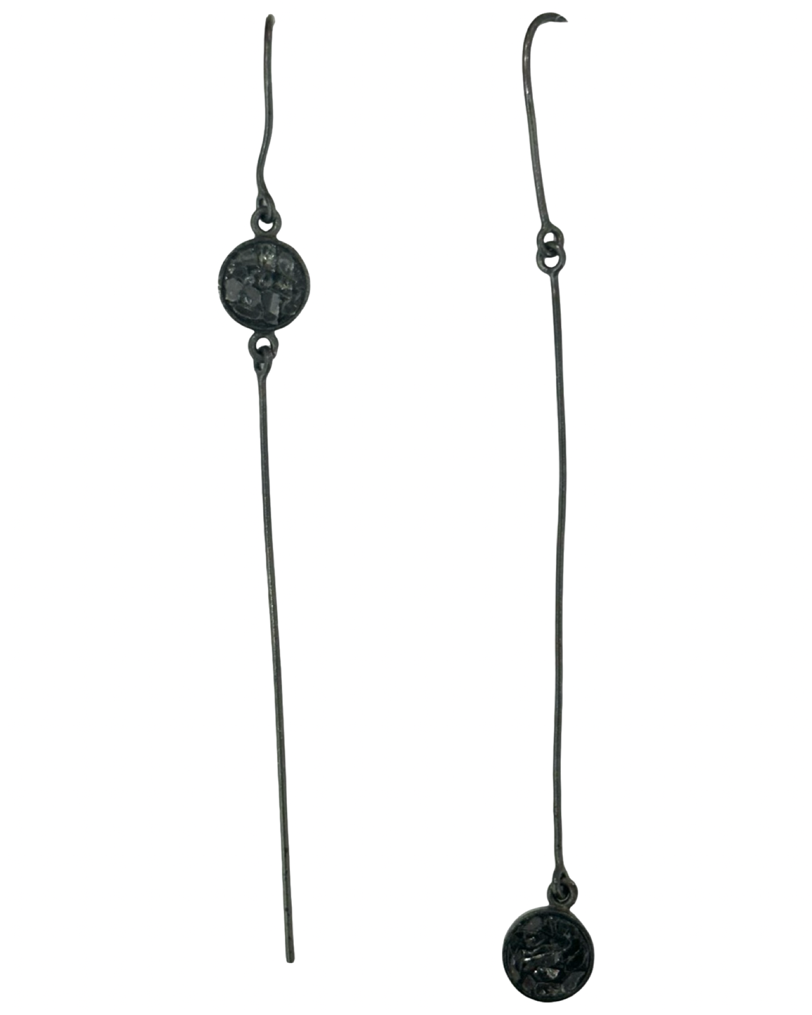 Orecchini asimmetrici in argento rodiato nero con diamanti a taglio vivo.